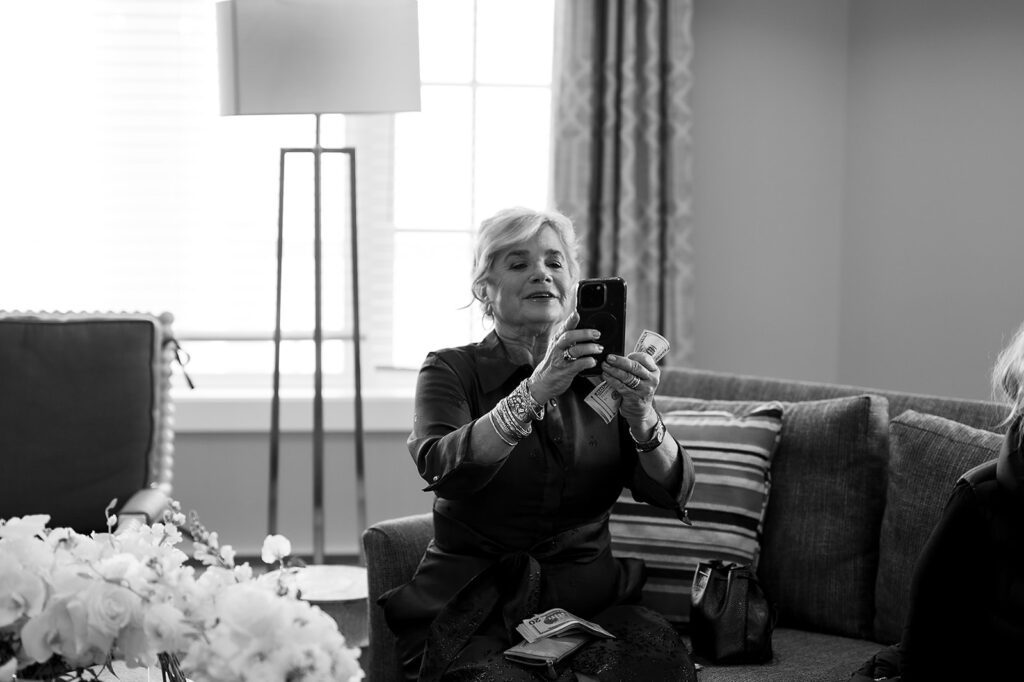 Angela’s satin dress and Charlie’s tailored jacket added a touch of elegance. I always love photographing welcome parties because they give space for the candid, in-between moments. Friends reuniting, toasts shared, and the anticipation that builds before the big day. Capturing these scenes brings even more depth to the full story of a wedding weekend.
